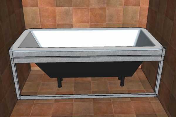 Начиная работу, нужно разметить будущий экран таким образом, чтобы кромка ванны оказалась вровень с его стенкой.