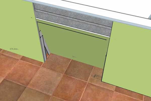 - Дверцы сделать несложно. Нужно измерить расстояние между верхней и нижней направляющими — это будет высота дверцы, и сделать нарезку из пластика соответствующих размеров.