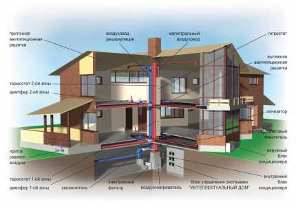 Разумеется, в современных домах используются не только системы вентиляции. Практически всегда одновременно с ними в комнатах устанавливаются кондиционеры. Существует несколько вариантов синхронного использования двух этих систем: