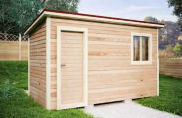 Самый универсальный размер постройки: ширина 1,5 м, длина 2,5 – 3 м. Она будет достаточно просторной, в ней можно установить несколько рядов полок и останется место под газонокосилку и прочий габаритный инструмент. Конструктивно хозблок будет представлять собой постройку прямоугольной формы с односкатной крышей.