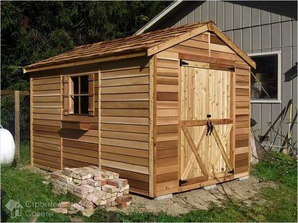 Рис.3. Сарай для инструмента. Для хранения простейшего садового инвентаря достаточно постройки размером 1,5х1,5 м. Чтобы в ней можно было сделать полки для хранения длина должна быть 2- 2.5 м. Для хранения садовой техники и прочего инструмента длину целесообразно увеличить до 3 метров.