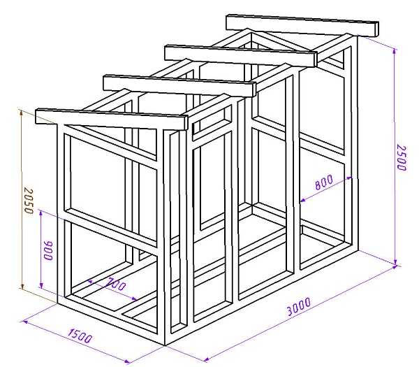 Рис.22. Пример каркаса сарая с односкатной крышей.