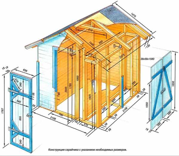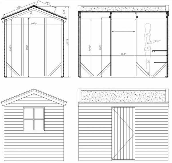 Рис.16. Схема с размерами стандартного сарая для дачи.