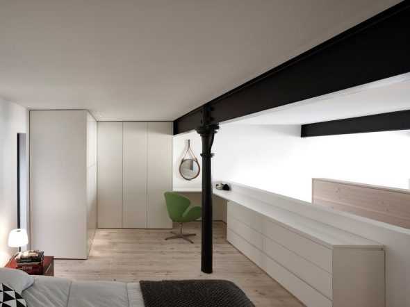 Встроенный шкаф может служить способом зонирования пространства. К примеру, многие используют возведение шкафа-купе, как способ отгородить спальное место. Это очень удобный способ для однокомнатной квартиры или квартиры-студии.