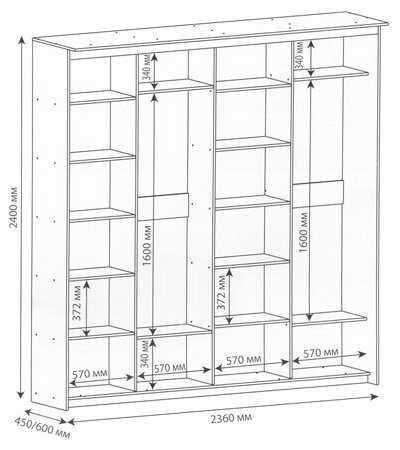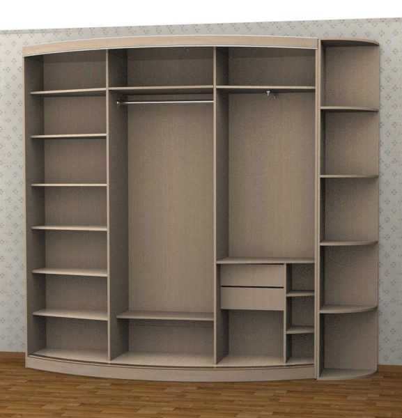 | Трапециевидная | Экономит место, не имеют выраженных углов. Стандартное наполнение: — среднее отделение для одежды, — два боковых для полок и ящичков. | _ |