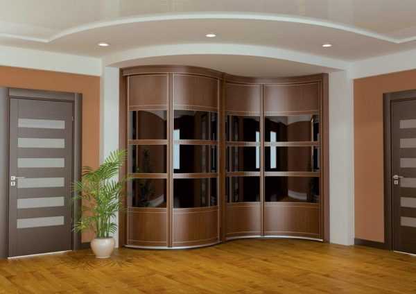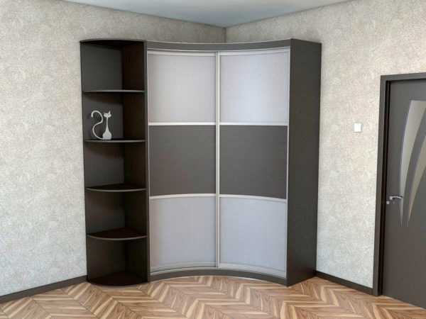 | Радиусная | Передовой, модный дизайн. Распашные дверцы можно сделать выгнутыми, вогнутыми. Смотрится стильно и красиво | Изделие выполняется по индивидуальному заказу. Сложность исполнения заказа обуславливает высокую итоговую стоимость. |