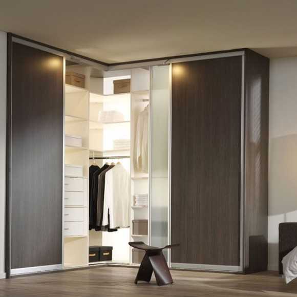 Встроенный угловой шкаф в спальню: виды и устройство.