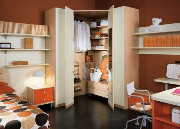 Встроенный угловой шкаф в интерьере спальной комнаты — особенности