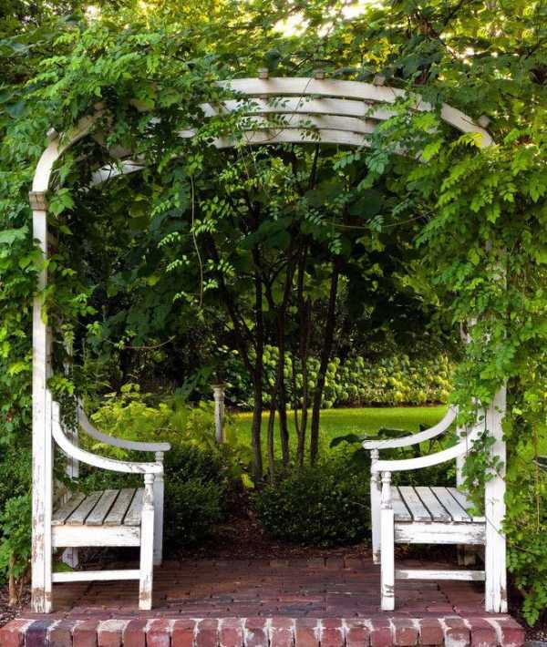 Примеры расположения садовых скамеек со стороны дизайнерского решения.