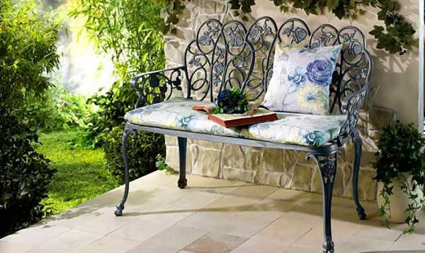- Металл Сделанная из металла садовая скамейка своими руками всегда будет элегантным украшением и идеальным местом, где можно провести свободное время. Использование ковки, возможно сочетать в комбинации с другим материалом, например деревом, также хорошо подойдет и стекло.