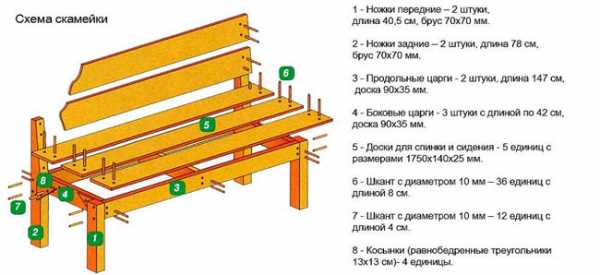 В таблице указан принцип, по которому делается садовая скамейка своими руками.