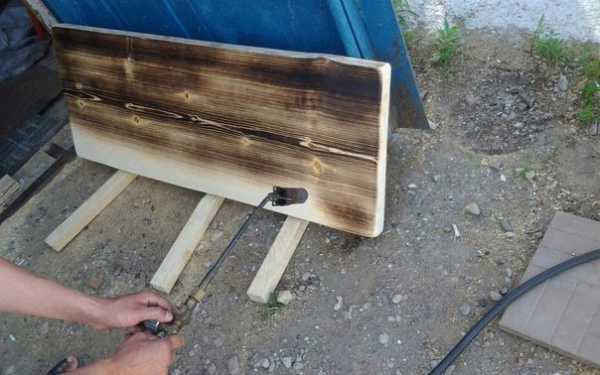 | Завершение работ | И самый последний штрих, перед тем как садовая скамейка своими силами будет сделана и готова к применению, следует провести обработку древесных участков при помощи морилки. Можно для таких целей использовать и лак. Такая процедура будет защищать материал от многих нежелательных факторов. |