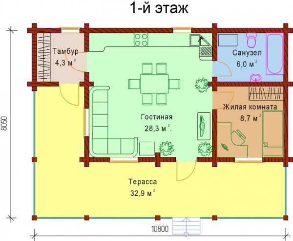 Чтобы рассчитать, к примеру, сколько кубов клееного бруса нужно на дом, необходимо определиться с габаритами будущего строения. Также должны учитываться размеры межкомнатных перегородок. Ниже приводится вариант вычислений для конструкции 6×8 метров, которая включает два помещения.