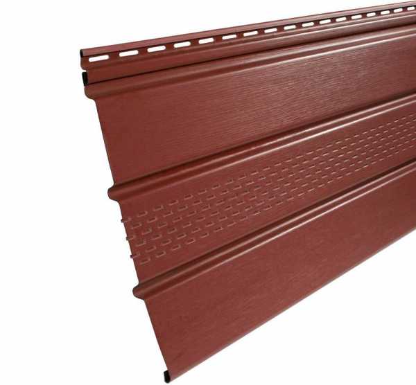 - Перфорированная софитная панель позволяет свежему воздуху проникать в чердачное или мансардное помещение, благодаря чему функционирует принудительная вентиляция.