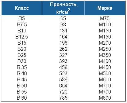Легко заметить, что пропорции цемента М400 для бетона в конечном итоге позволяют сэкономить ваше время и средства. Стоит отметить, что все марки делятся на классы, каждый из которых имеет свои показатели прочности бетона, ознакомиться с которыми можно в представленной таблице.