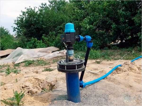 Насос для такой скважины используется самовсасывающий, который подключается непосредственно к трубе и создает в ней разрежение (вакуум), и этот вакуум и поднимает воду на поверхность.