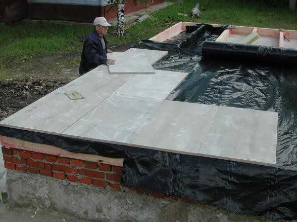 - ΠΠΎΠ²Π΅ΡΡ Π½Π°ΡΡΠΈΠ»Π° ΡΠΊΠ»Π°Π΄ΡΠ²Π°ΡΡ Π³ΠΈΠ΄ΡΠΎΠΈΠ·ΠΎΠ»ΡΡΠΈΠΎΠ½Π½ΡΡ ΠΌΠ΅ΠΌΠ±ΡΠ°Π½Ρ ΠΈ ΡΠ»ΠΎΠΉ ΡΡΠ΅ΠΏΠ»ΠΈΡΠ΅Π»Ρ. ΠΡΠΈΡΠ΅ΠΌ ΡΠΎΠ»ΡΠΈΠ½Π° ΡΡΠΎΠ³ΠΎ ΡΠ»ΠΎΡ Π΄ΠΎΠ»ΠΆΠ½Π° Π±ΡΡΡ Π½Π° 2-3 ΡΠ°Π½ΡΠΈΠΌΠ΅ΡΡΠ° ΠΌΠ΅Π½ΡΡΠ΅ Π³Π»ΡΠ±ΠΈΠ½Ρ Π»Π°Π³ΠΈ β ΡΡΠΎ ΠΏΡΠΎΡΡΡΠ°Π½ΡΡΠ²ΠΎ ΠΏΠΎΠΉΠ΄Π΅Ρ ΠΏΠΎΠ΄ Π²Π΅Π½ΡΠΈΠ»ΡΡΠΈΠΎΠ½Π½ΡΠΉ Π·Π°Π·ΠΎΡ.