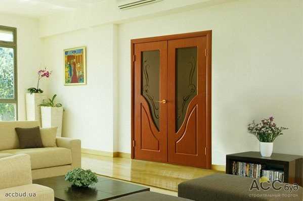 В гостиную люди часто ставят двухстворчатые двери. Часто двери делают стеклянными или украшают различными декоративными элементами. Высота в стандартной квартире составляет 2000 мм, а ширина варьируется от 1280 до 1600 см. Если разделить этот параметр надвое, то получится ширина каждой створки – от 640 до 800 мм.