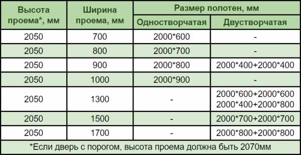Размеры полотна и проёма для распашных дверей
