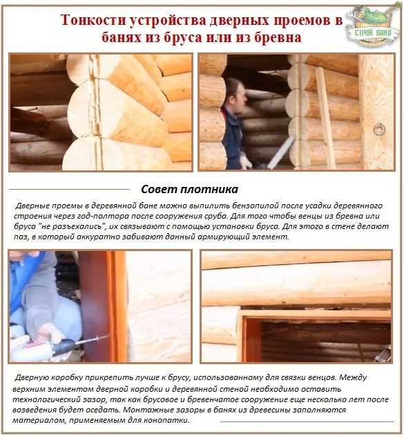 Год-полтора постстроительного перерыва нужно выдержать при любом раскладе. Установка дверных блоков в баню из древесины допустима только по окончании интенсивной усадки.