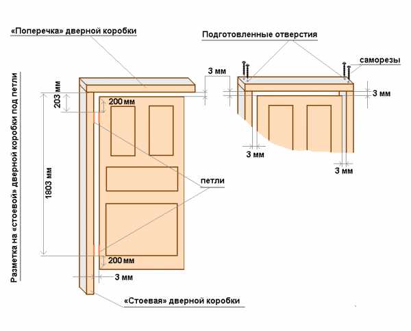 Между верхней линией дверного проема и коробкой обязательно следует оставить 3-5 см, так как деревянное строение слегка будет оседать и впоследствии.