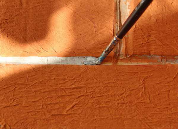 - Красную (коричневую) штукатурку со швов нужно снять.