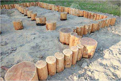 Для строений из бруса, обычно обустраивают ленточный фундамент, свайный и мелко заглублённый.