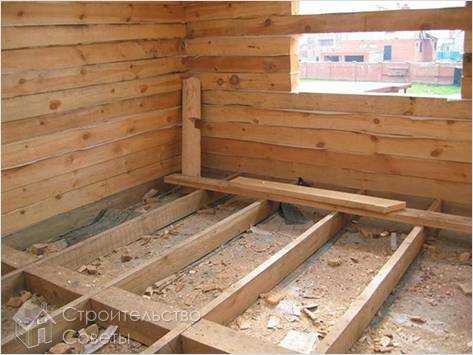 В доме из бруса полы принято делать также как в других постройках из дерева, то есть полы настилают на лаги или специальные балки, которые служат перекрытиями.
