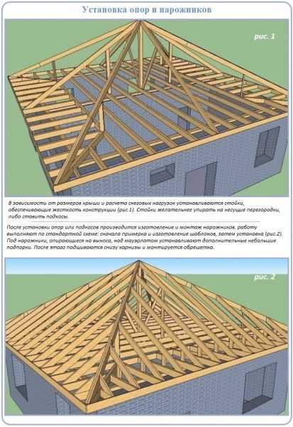 - для промежуточного крепления стропил используются стойки и подкосы;