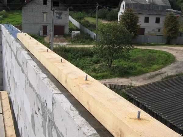 Если дом возводится из строительных блоков, то мауэрлат удобнее всего укладывать на резьбовые шпильки, замурованные в стену в процессе её кладки