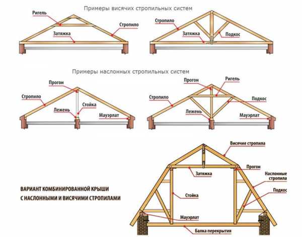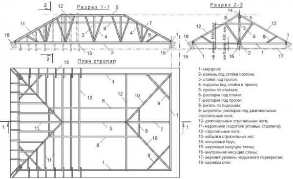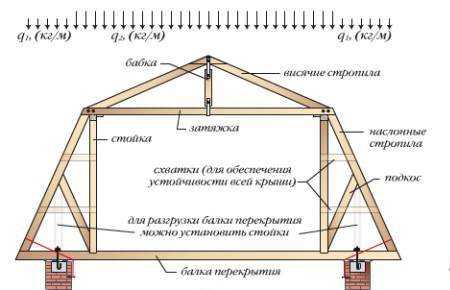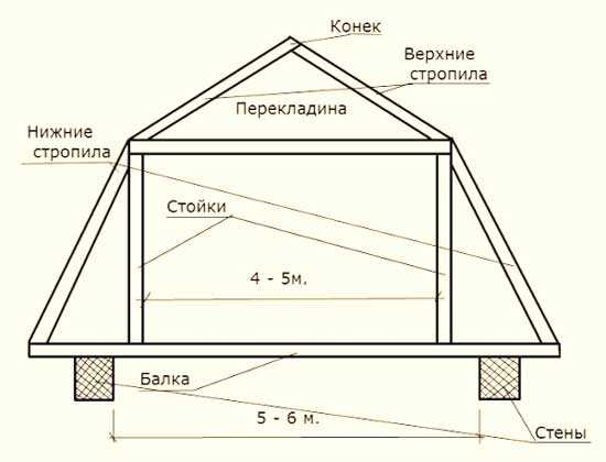 Схема стропильной системы мансардной крыши, основные узлы и элементы