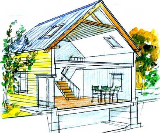 Двускатная крыша требует наименьших затрат рабочего времени и небольшого расхода строительных материалов