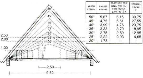 - Lc = Lbc /sin A, где Lc − длина стропильной ноги.