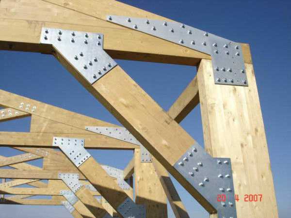- Точки крепления подкосов и стоек, которые придают дополнительную опору стропилам.