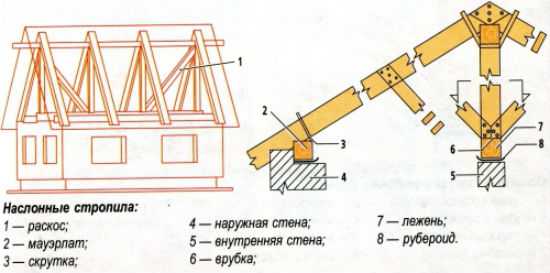 Стропильная система мансардной крыши, схема расположения узлов односкатного перекрытия