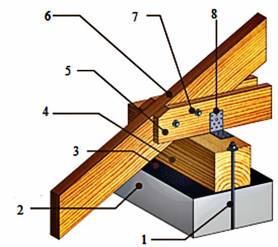 Стропильная система мансардной крыши, фото крепления висячих стропил к мауэрлату