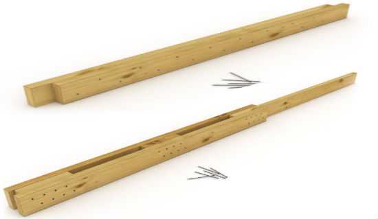 Скользящий способ соединения заключается в том, что в мауэрлате выпиливается выемка под ногу, затем детали соединяются между собой специальным металлическим уголком — салазки. Так крепится наслонная система.