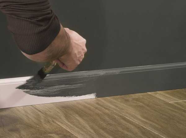 - Пол. Если выберем стандартное сочетание пола с напольной планкой, то оно не привлечет внимание. Иногда не удается найти нужный цвет плинтуса, тогда на помощь приходит элемент под покраску. Состав подбирается строго под оттенок имеющегося напольного покрытия. Окрашивание проводится до или после установки.
