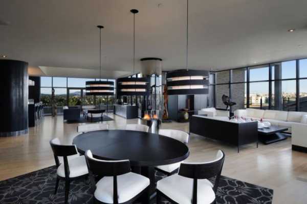 На темный пол также нередко используется плинтус светлого оттенка, если просторное само по себе помещение. На фото выше окантовка – единая линия, которая как бы огибает однотонные двери, придавая цельность картине.