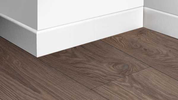 - Подбирайте материал, из которого изготовлен белый плинтус в зависимости от напольного покрытия.