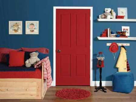 Цвета пола, плинтусов и дверей можно подобрать таким образом, чтобы получилось эффектное и оригинальное сочетание, служащее самостоятельным украшением интерьера. Например, при стандартном варианте темного напольного покрытия и светлой отделки стен, использование белого плинтуса и яркого цвета для дверного полотна создадут интересный художественный образ.