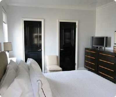 - Еще один вариант сочетания пола и дверей по принципу темное-светлое предполагает окраску стен также в светлые тона. Это особенно хорошо смотрится в том случае, если помещение не слишком высокое. Такое цветовое сочетание позволит визуально немного “приподнять” потолок.