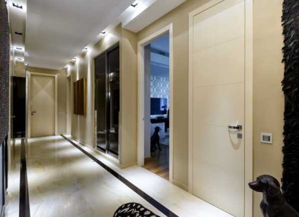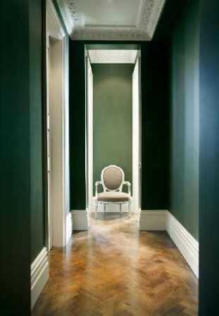 На примере дизайна очень узкого удлиненного коридора, где выделяется цвет плинтуса в отношении покрытия, видно, как четко обрисованы контуры коридора. Благодаря такому приему выигрывает созданный дизайн, ведь малая площадь коридора, а благодаря такому очертанию она как бы визуально увеличилась. Порой контрастность играет большую роль.
