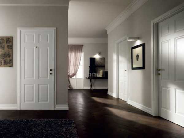 Сочетание белого плинтуса и белых дверей, является классическим. Но для разбавления такого светлого оформления необходимо вносить цветовые контрасты. Например, цвет стен или пола, или яркие элементы декора: мебель, аксессуары, панно и картины на стенах.