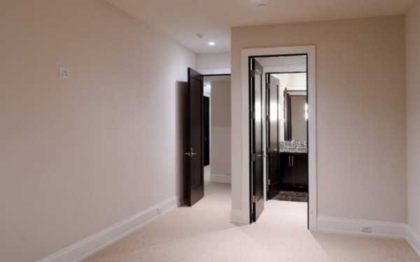 - Дверь. Проем в стене, полотно и выступы оформляются в едином цветовом решении. Со стороны выглядит, будто планка окольцовывает все пространство комнаты. Так черный или цветной плинтус объединяет все элементы интерьера.