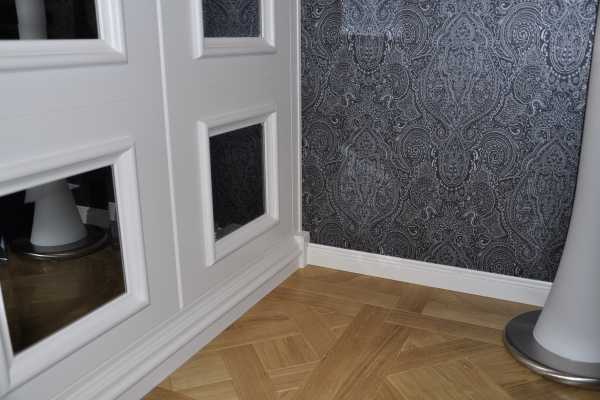- Белый плинтус не должен уменьшать пространство помещения, обращайте внимание на его ширину и выбирайте исходя из высоты стен и площади.