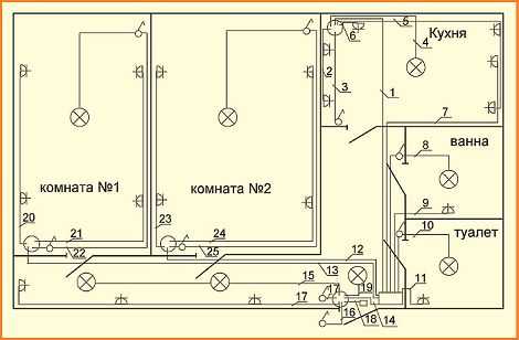 Рис. 1. Типичная схема проводки в однокомнатной квартире