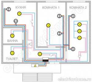 Итак, наша схема разводки электропроводки в квартире выглядит так: