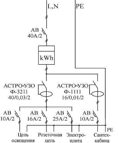 Стоит отметить, что часто такая классическая схема дополнялась отдельной ветвью для питания электрической плиты. Как известно, плита является мощной и требует больше тока.