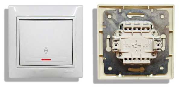 Проходной выключатель внешне похож на обычный. Более того, он может работать как обычный выключатель, если подвести к нему два провода: вход и выход.